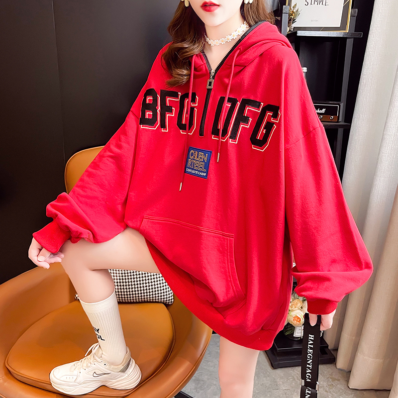 Maternity clothes autumn clothes Korean version fashion loose embroidery letter stitching zipper hooded large size medium and long version thin thick cotton T