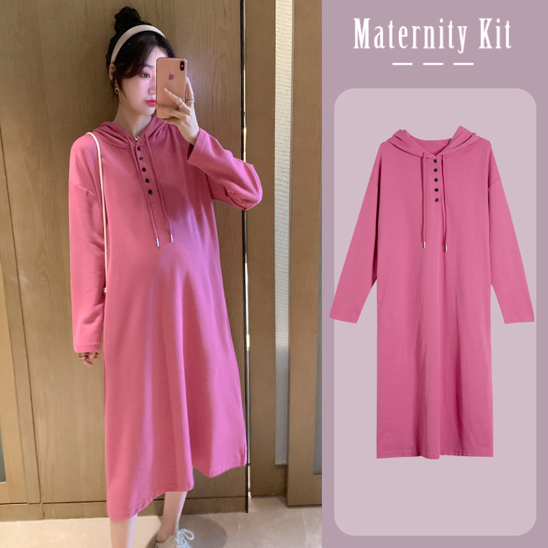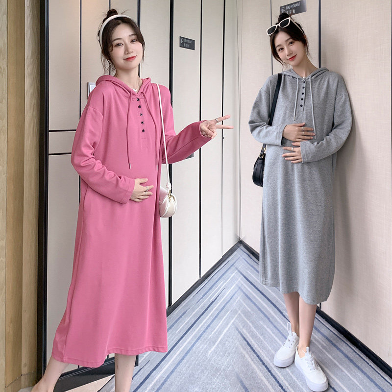 Maternity autumn clothes go out fashion 2021 autumn long-sleeved new maternity clothes top loose mid-length version