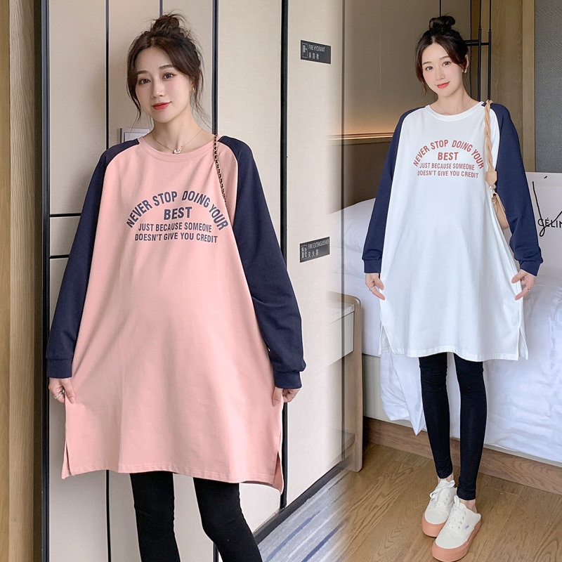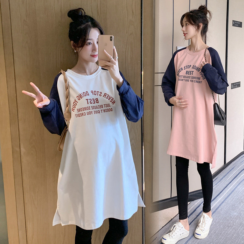 Small maternity clothes autumn fashion fashion 2021 new loose long-sleeved thick cotton T-shirt women's spring and autumn net red