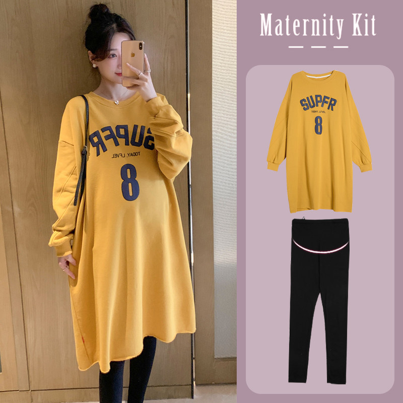 Little maternity dress autumn fashion 2021 new long-sleeved thick cotton T top dress spring and autumn net red