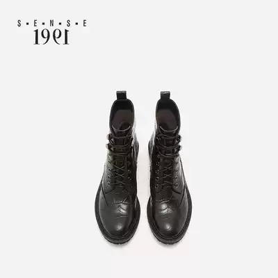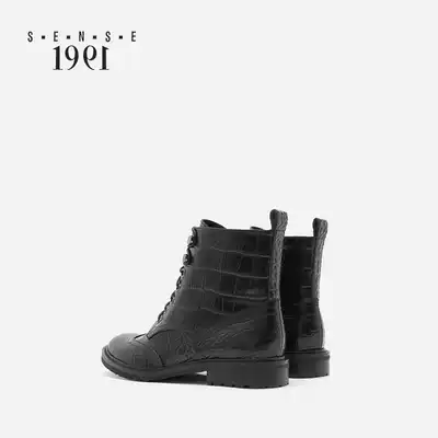 sense 1991 genuine leather thick-heeled Martin boots female flat lace-up English retro boots Joy Chelsea boots