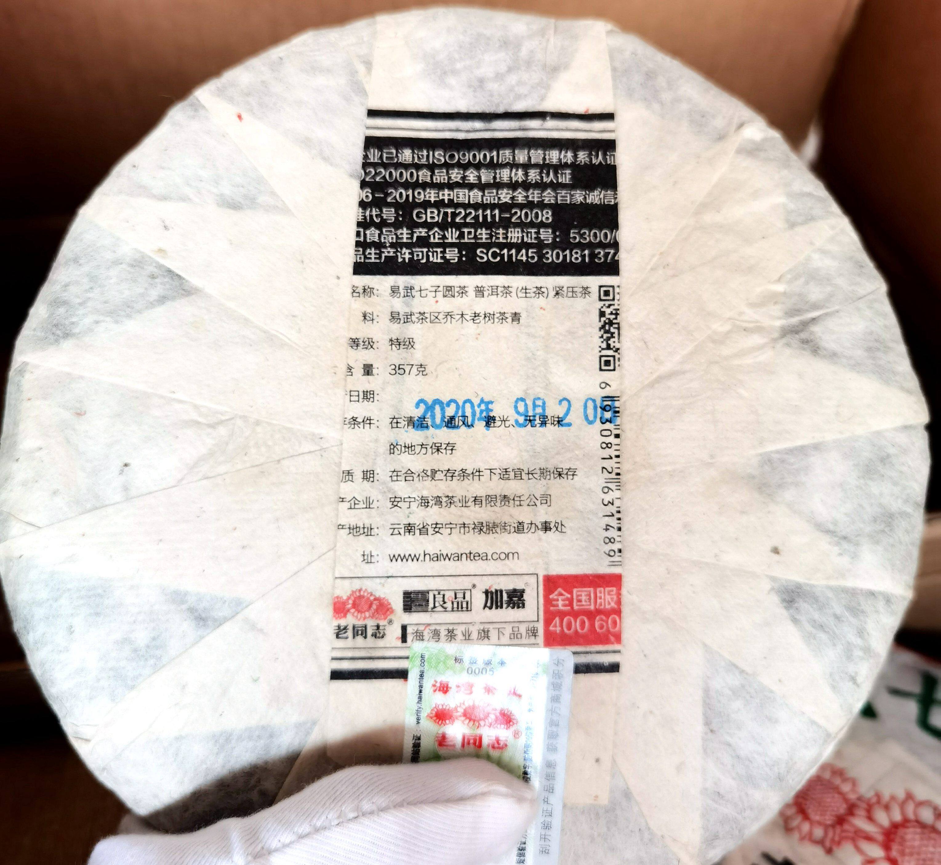 Old comrades Pu'er Tea 2020 Yi Wu Seven Round Tea Raw Cake 357 gr Pie Pu'er Raw Tea