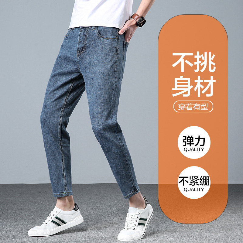 Summer Nine Minutes Jeans Men 2022 new tide loose tube casual and spring men's pants thin