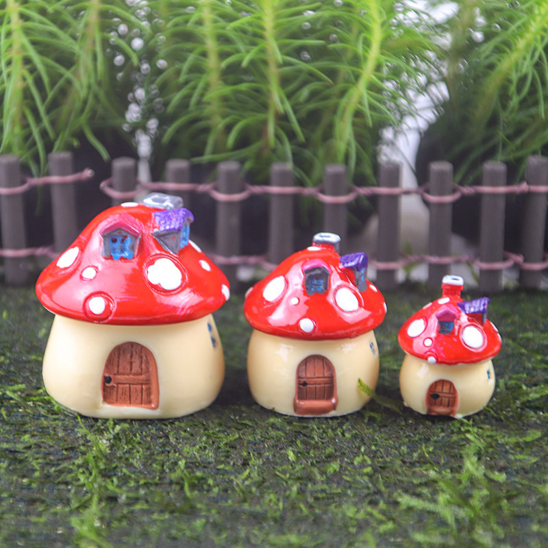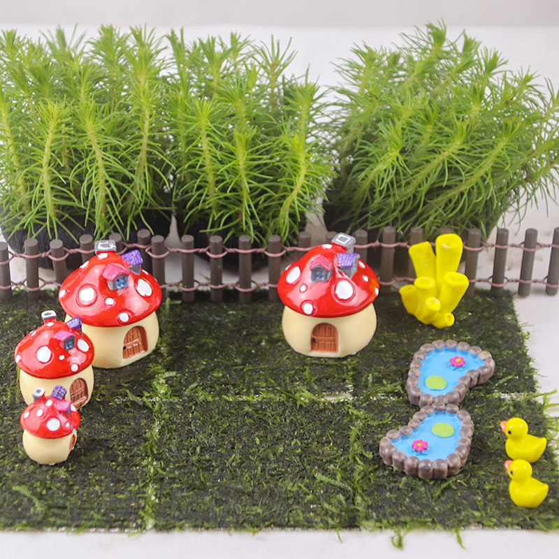 Blue small dolphin white small dolphin round fence mushrooms house red small mushroom house red mid mushroom house red large foot girl type lotus flower large size dolphin resin small house black coal ball small arch bridge small