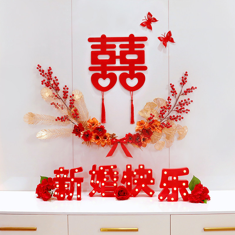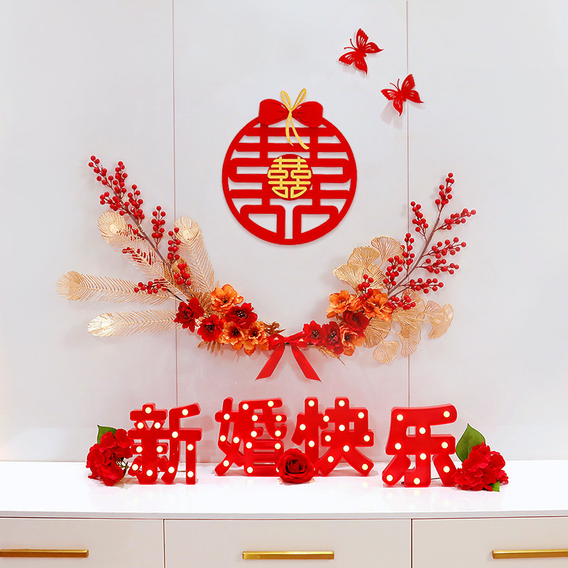 Wedding room layout set wedding decoration man's new house woman's room bedroom living room Chinese net red pull flower hi word