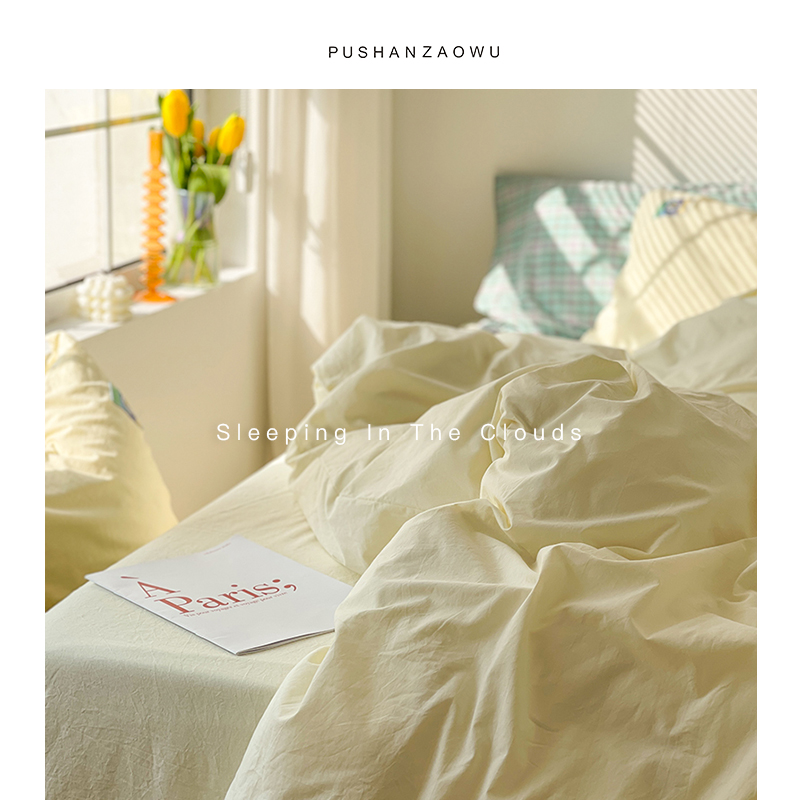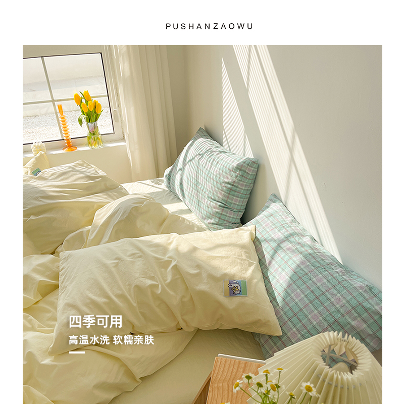 Small Red Book Blogger Recommended Pure Cotton Four Pieces " Adolescent Girl Pure Color All-cotton Small Frescoed Simple Bed Bedding Kit