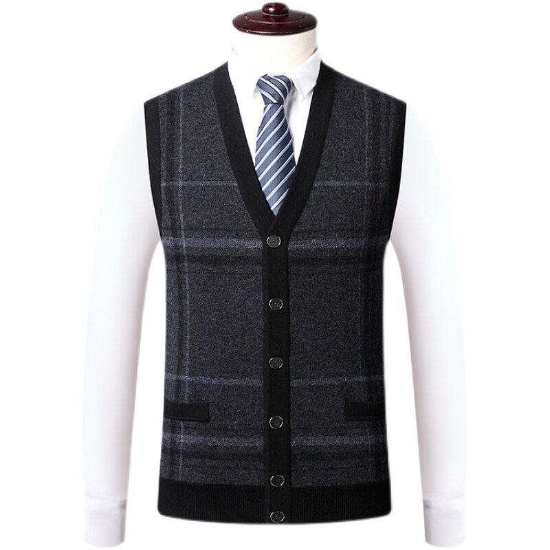 100 pure cashmere sweatshirt thickened V neckline cashmere cardiovert waistcoat Senile Fur Vest Loose pocket Camshoulder