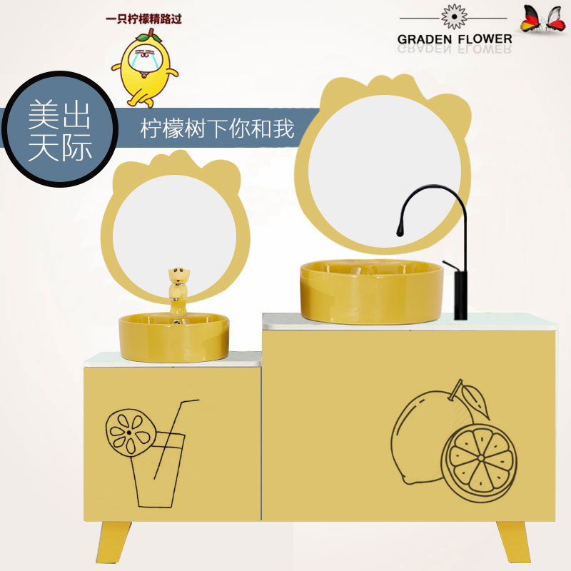 Creative parent-child cartoon children's bathroom cabinet high and low washstand can be customized avocado mother cabinet kindergarten color