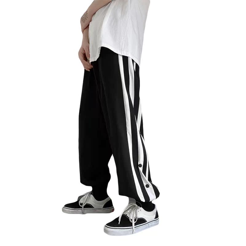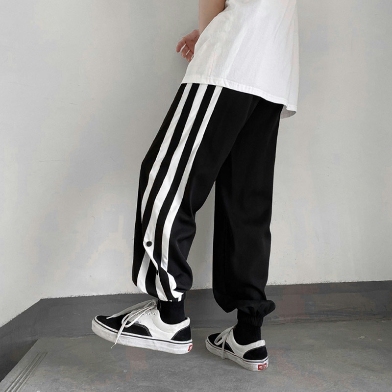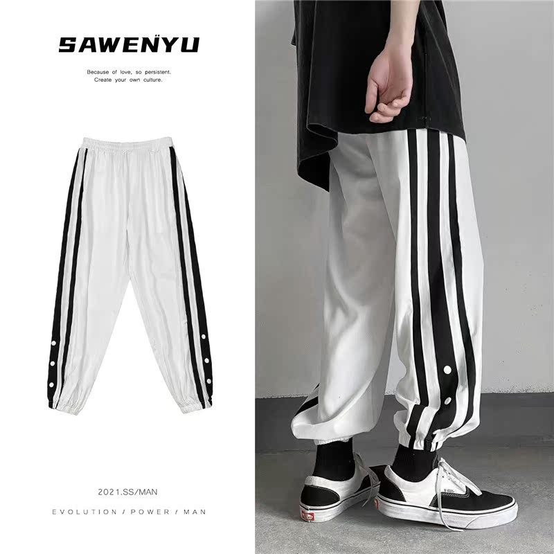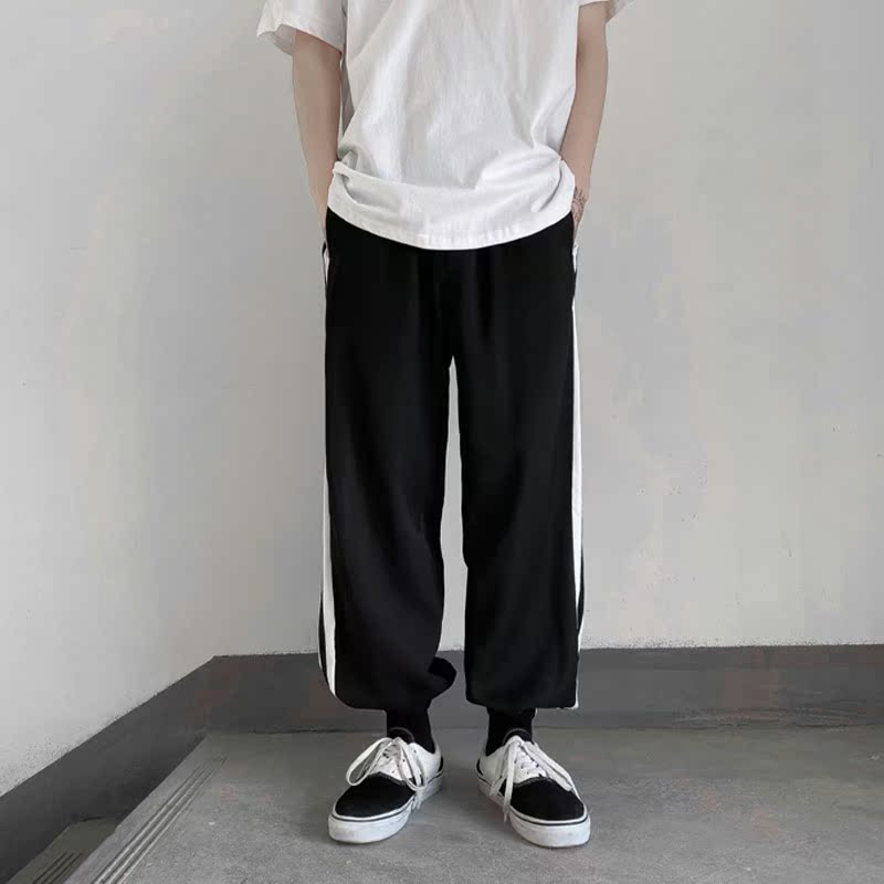 Sports pants men's summer thin section nine-point pants gray loose striped beam feet casual pants three-bar sweatpants men's spring and autumn