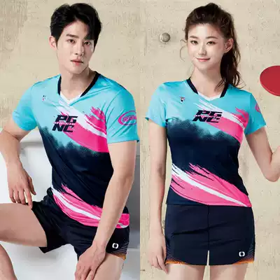 2021 New Korean badminton suit men's and women's top short sleeve quick-drying tennis sportswear match team uniform