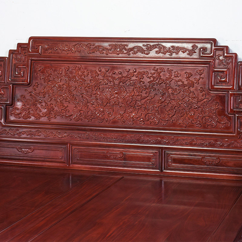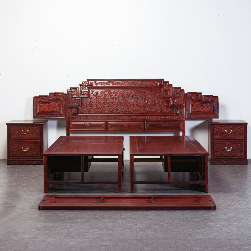 Zambia Blood Honoluxury Bed All-solid wood Chinese Double Bed African Little Leaf Honolulu High and Low Bed