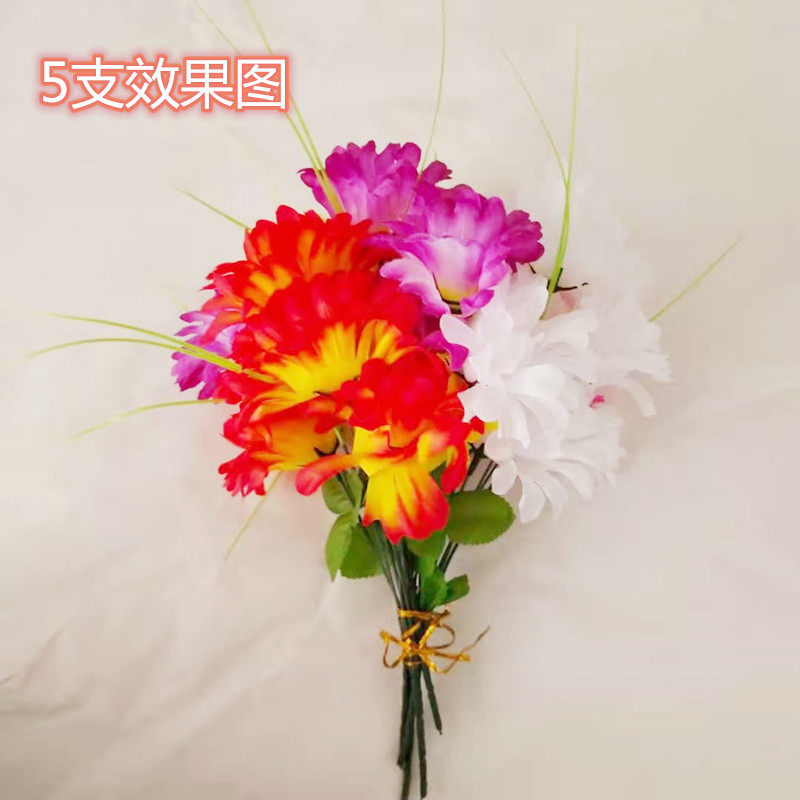 Qingming Flower 7 heads emulated chrysanthemum sacrificial supplies Lachate to hold the tombs on the grave and the cemetery of the cemetery of the cemetery and the floral tributes for the flower