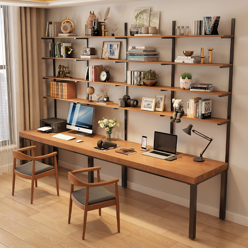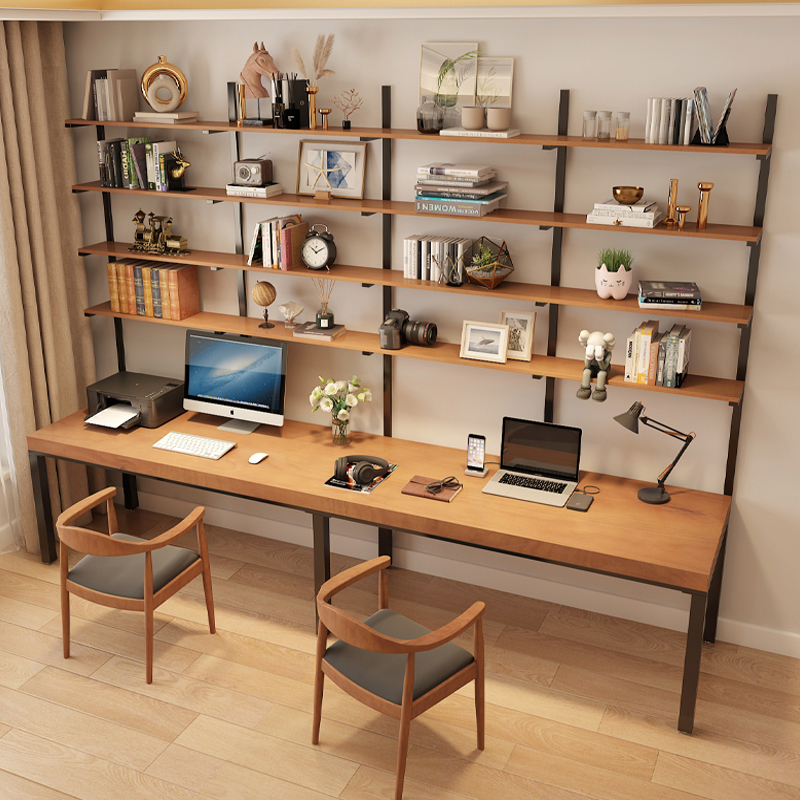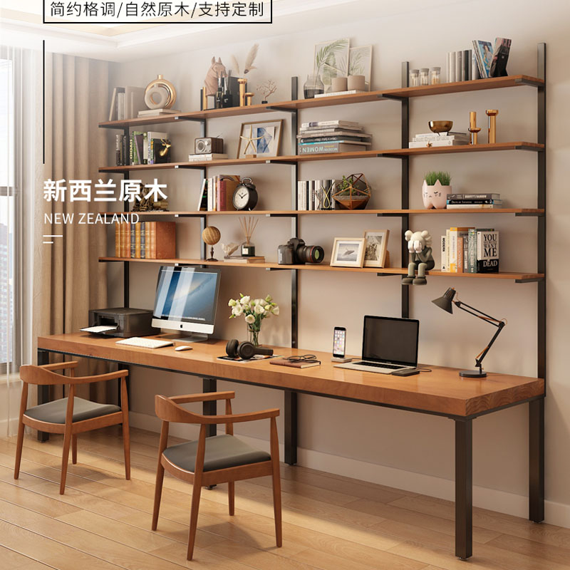 Loft double computer desk desktop simple solid wood desk bookshelf one bookcase bedroom home long table desk