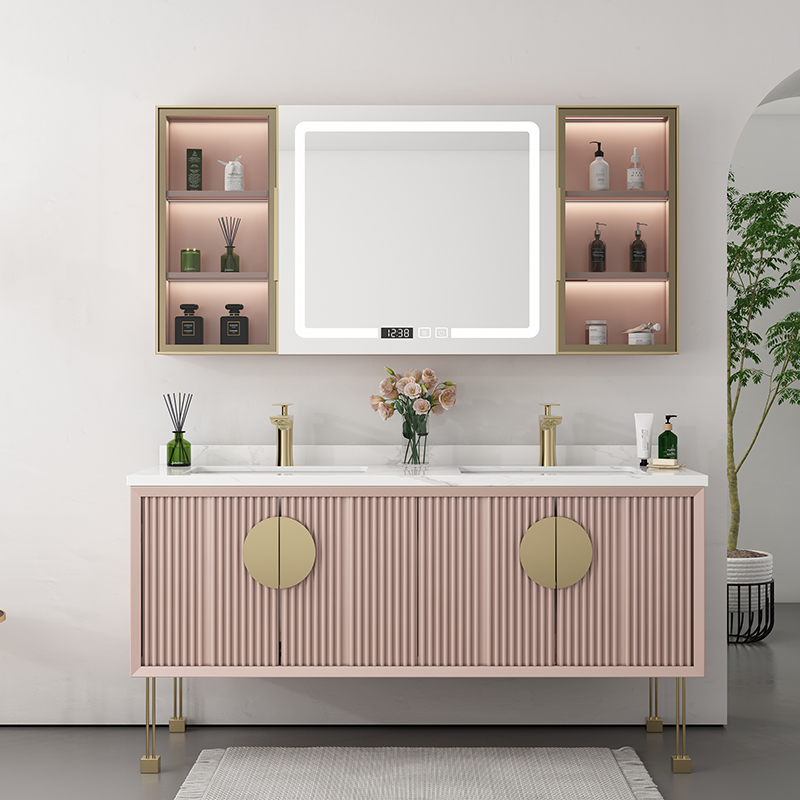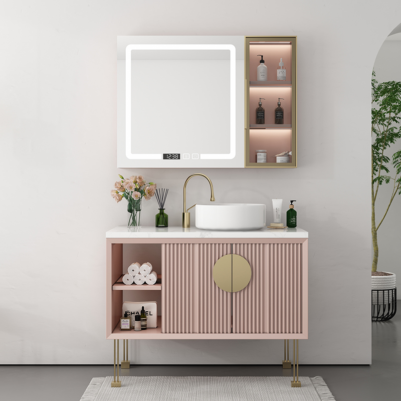 Pink Nordic bathroom cabinet combination light luxury rock slab modern minimalist bathroom wash basin wash basin cabinet