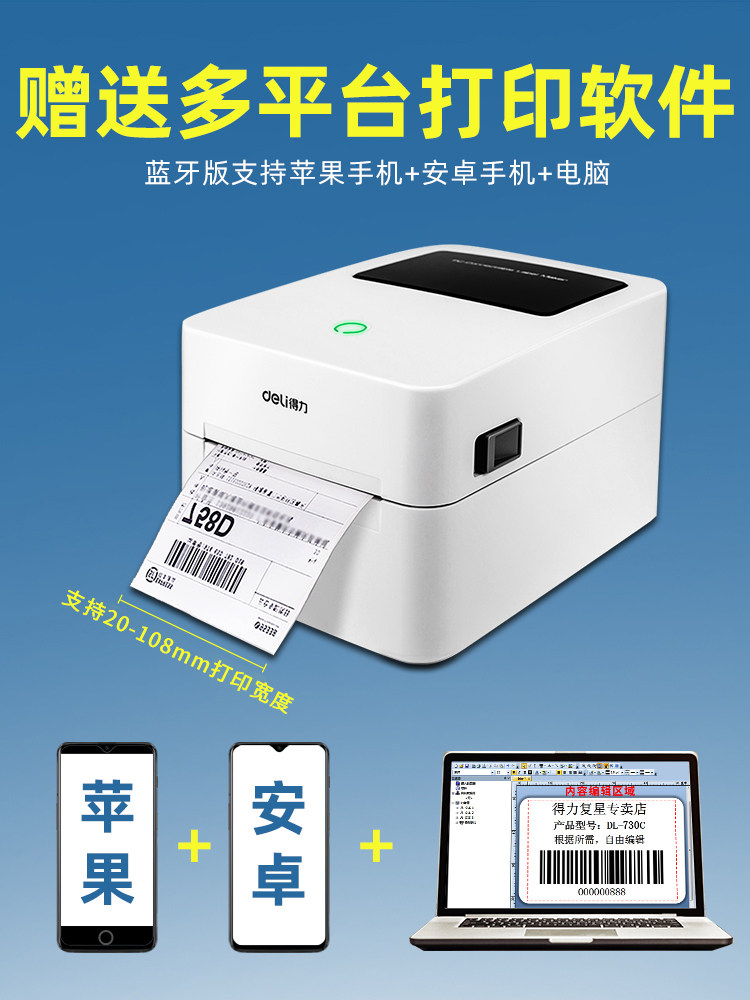 730c label printer Bluetooth household self - adhesive electronic sheet thermal paper delivery order commercial bar code printer QR code wireless stand-off notes