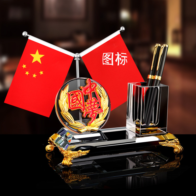 Creative pen holder office desktop storage box crystal ornaments custom logo lettering boss office desktop pen holder fashion simple activities commemorate high-end personality business leadership gifts