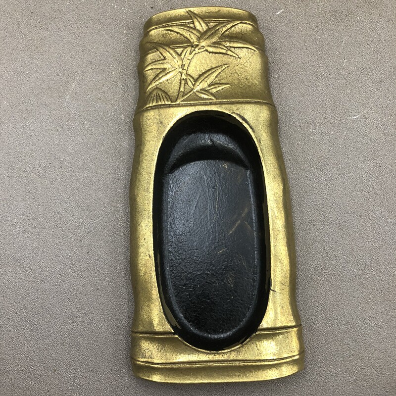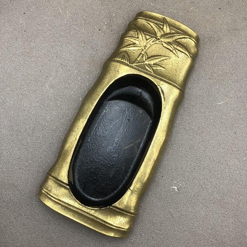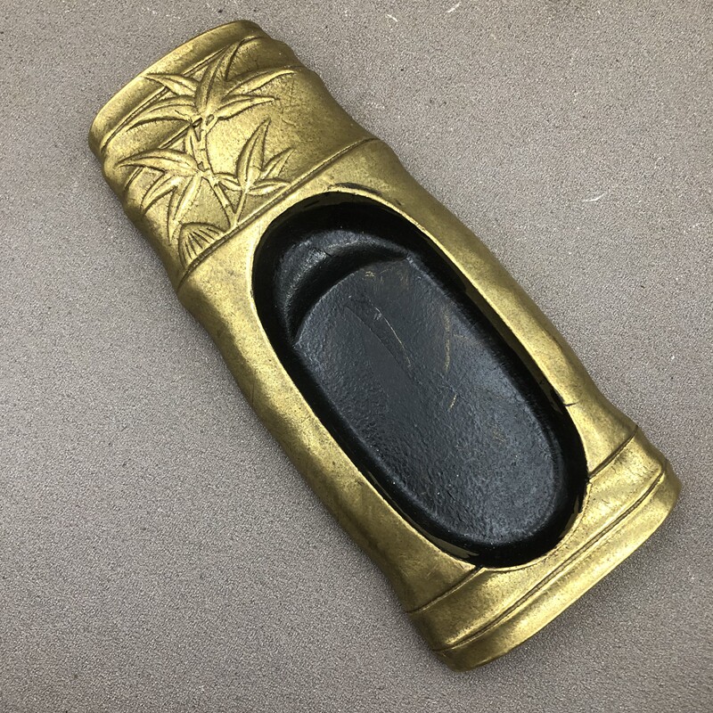 Inkstone Study Four Treasures Pen Rest Study Supplies Ink Set Green Bamboo Inkstone Home Craft Ornament Bronze Ware