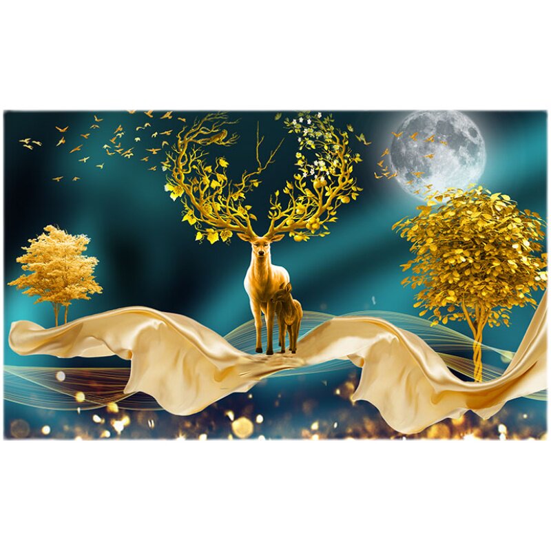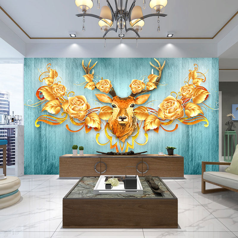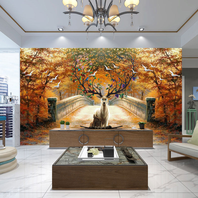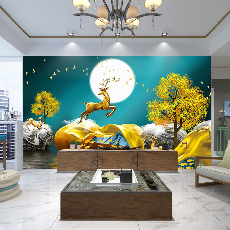 Hair Rich Elk Deer TV Background Wall Integrated Wall Panel Decoration Living Room Bamboo Wood Fiber Guard Board 3d Chinese film and TV buckle plate