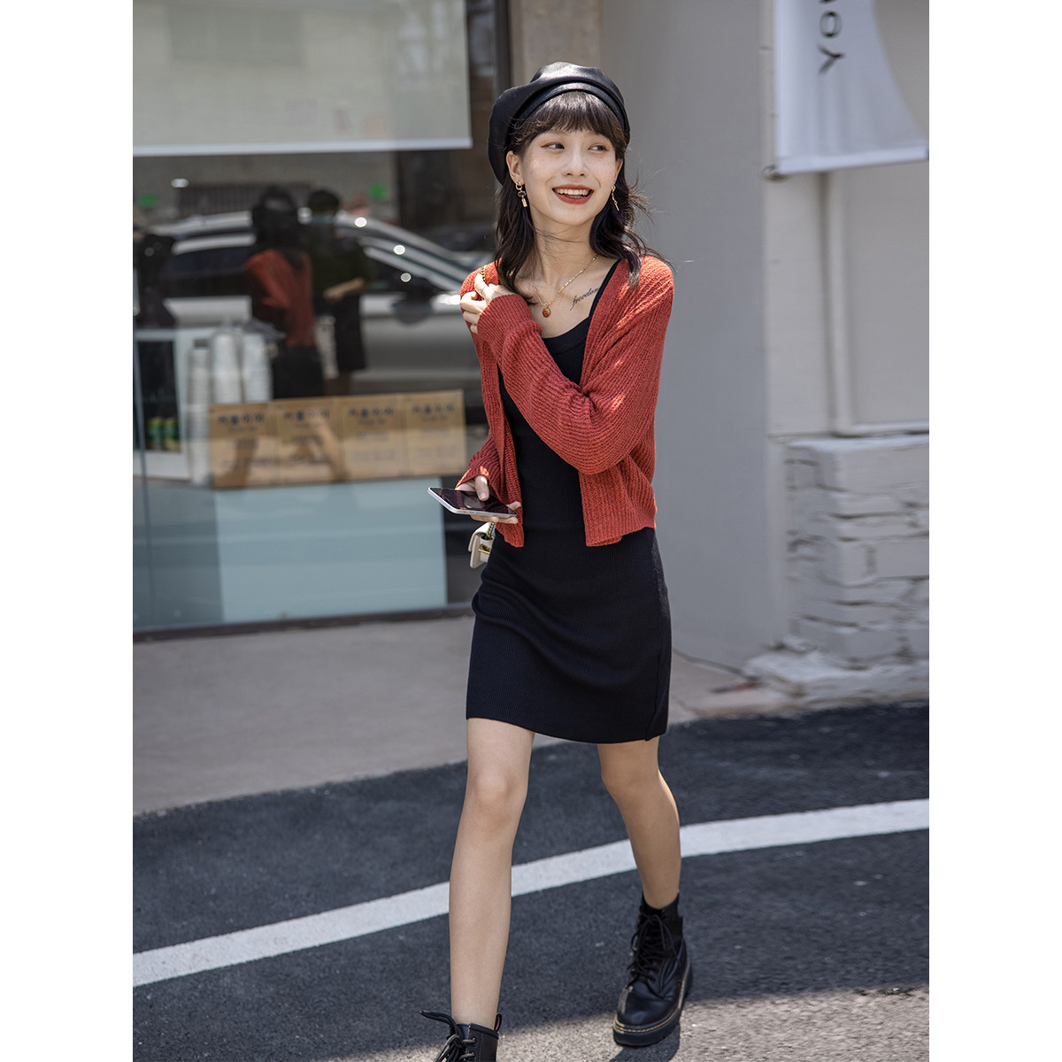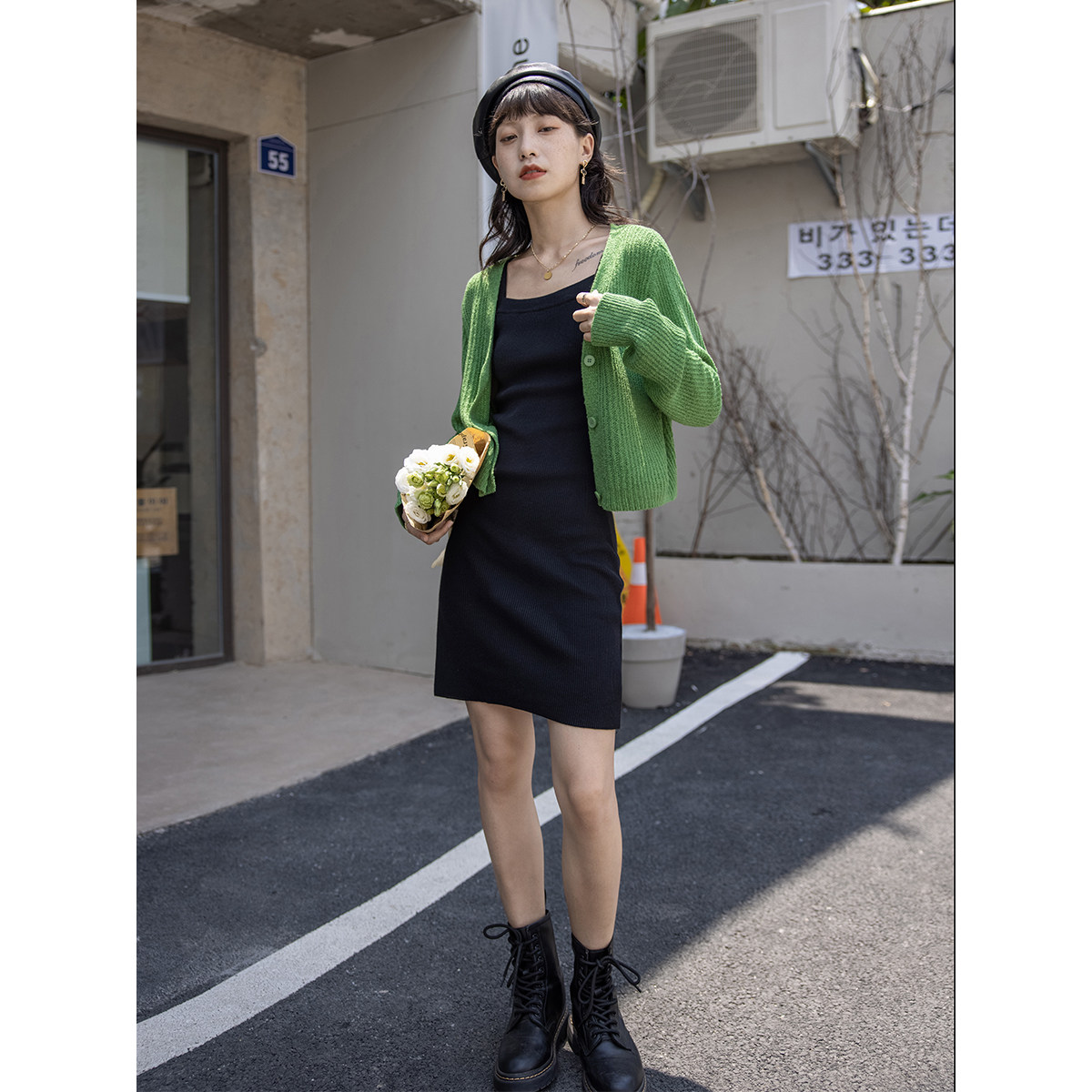 Little black dress suspender skirt spring and autumn knitted slim slim vest skirt bag hip short dress bottoming skirt women