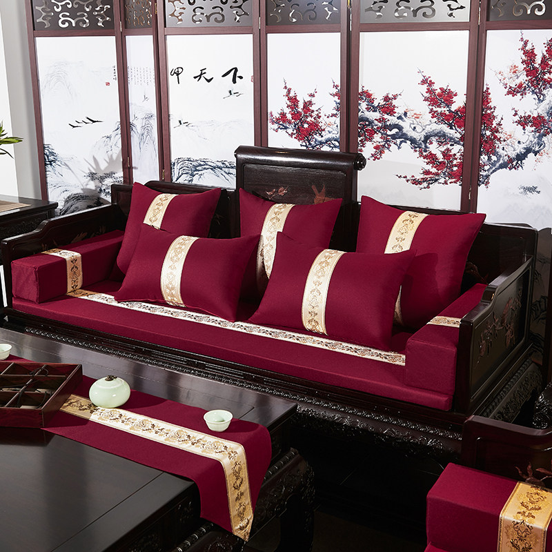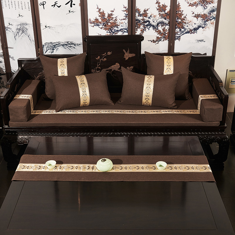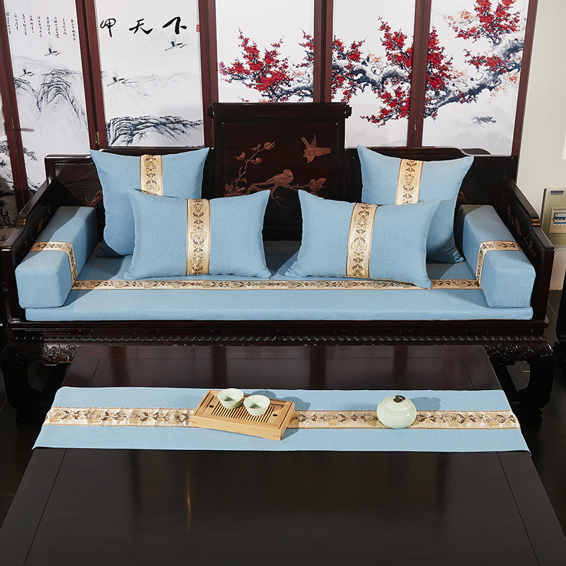 Mahogany sofa cushion living room Taishi chair ring chair Arhat bed new Chinese solid wood linen custom non-slip removable and washable