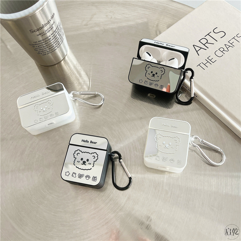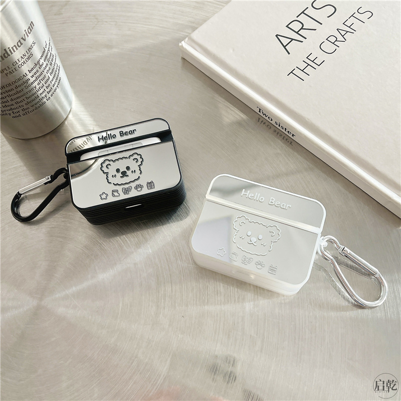 Cute Little Bear Cartoon Mirror Airpods Protective Shell Sleeve 2 Generation 3pro Apply Apple Wireless Bluetooth Headphones 23 1 Generation Silicone Gel Softbox Minimalist Personality Korea Small Crowdwind Female New
