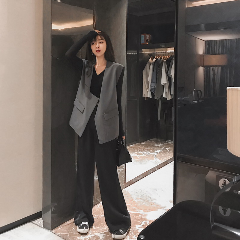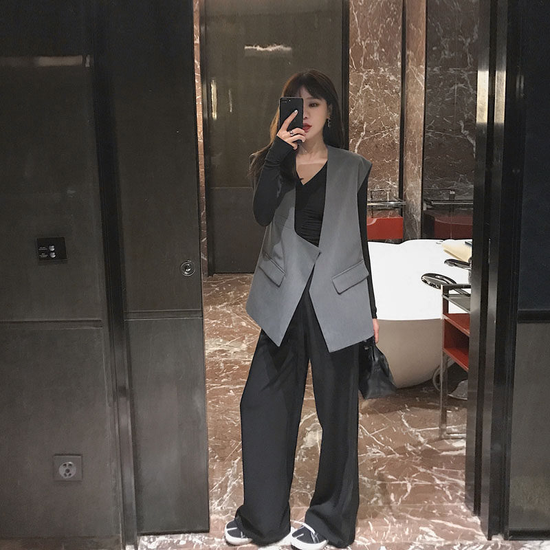 Suit vest woman spring autumn 2021 net red new loose sleeveless outer hitch waistcoat vest small fragrant wind canon shoulder jacket