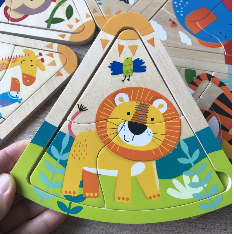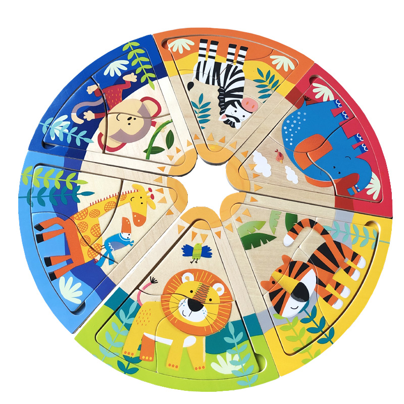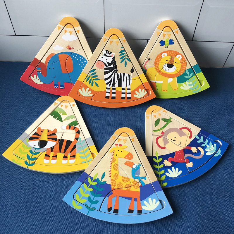 Montessori early education educational toys entry-level large cartoon animal puzzles 1-3 years old European and American custom pizza pairing