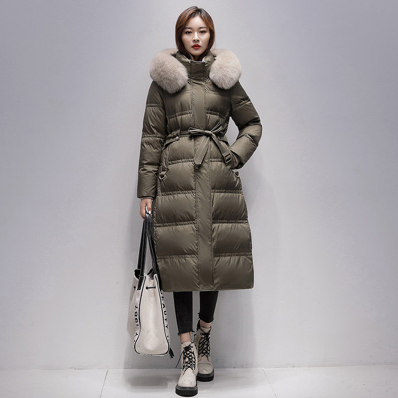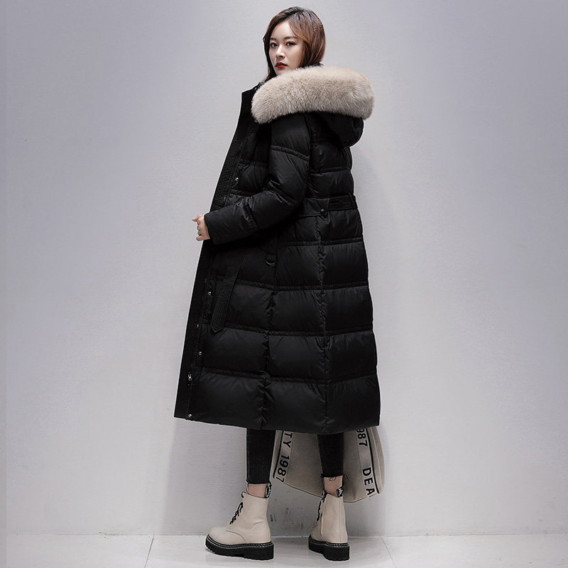 Duck and duck off-season clothing down women's mid-length version over the knee 2022 new winter clothing white duck down luxury real fur collar jacket