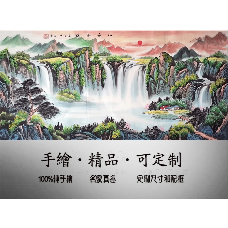 Landscape painting living room hanging painting backing mountain fortune office hand-painted all directions to fortune office ink calligraphy and painting Chinese painting