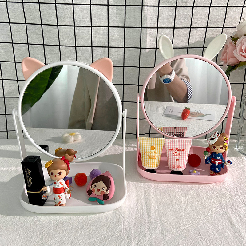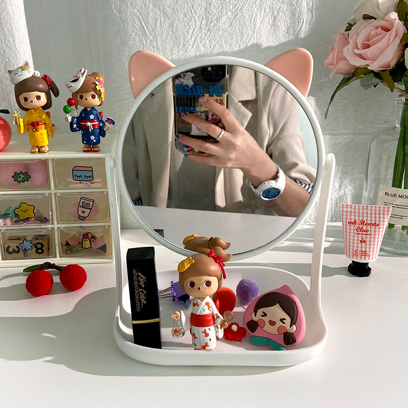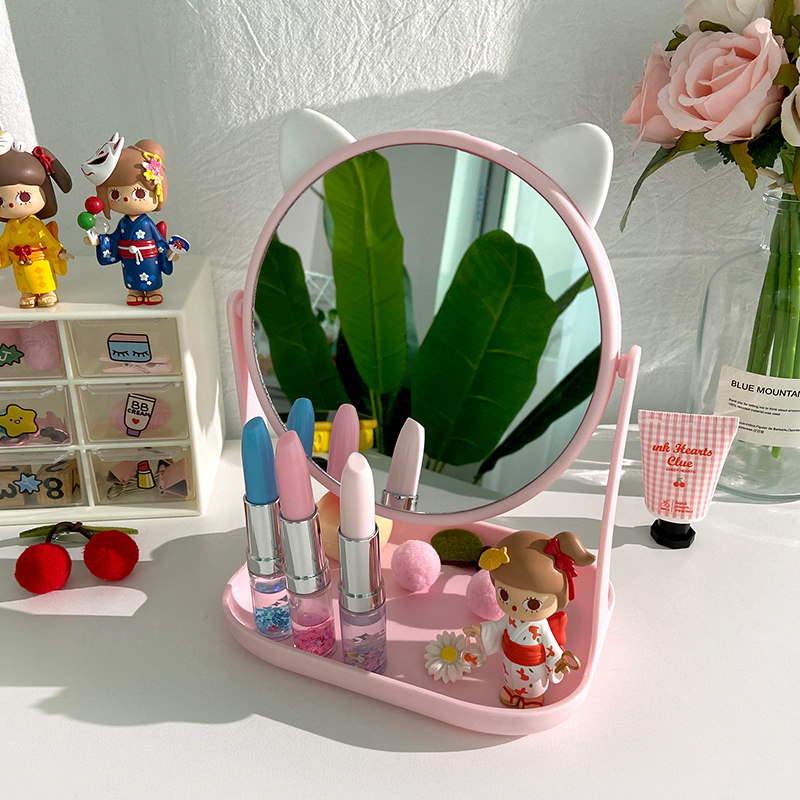 In wind desktop mirror makeup mirror students lovely girls heart dorm desktop cosmetic mirror with container box