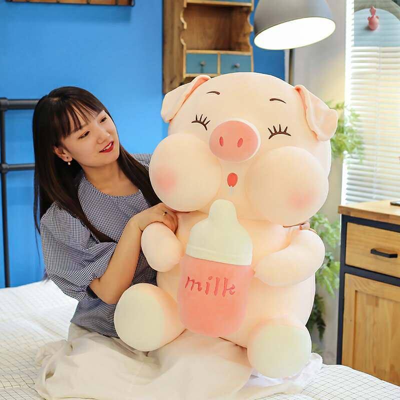 Baby bottle pig doll car doll pillow boy sleeping pink piggy office super soft large toot pig