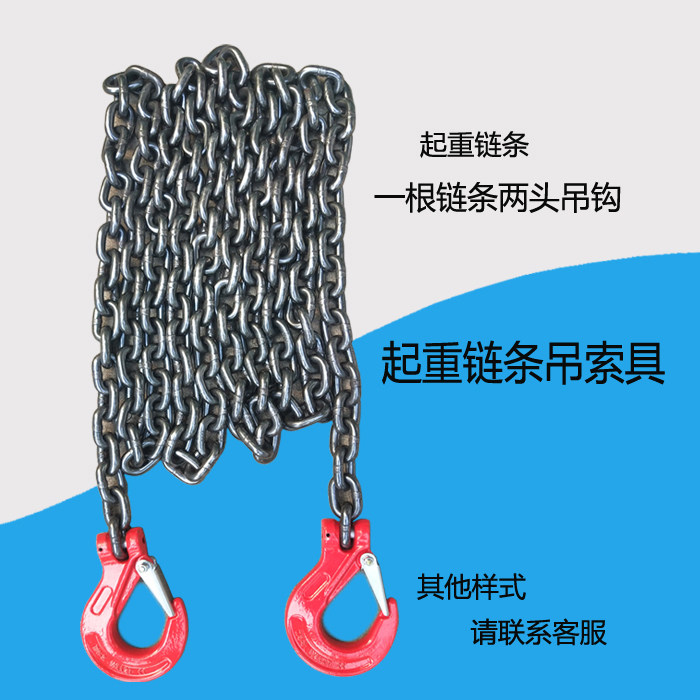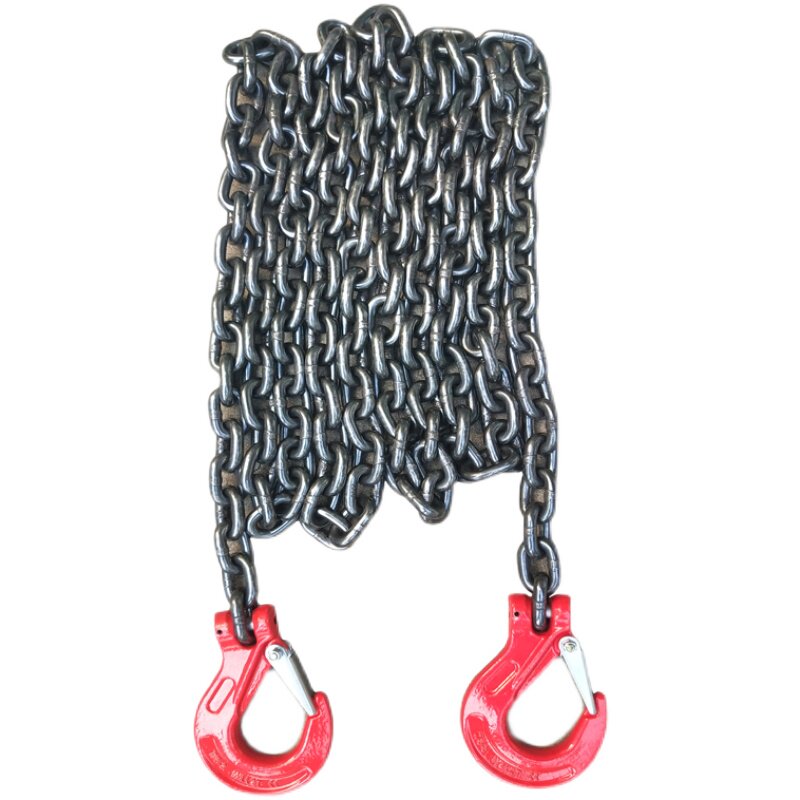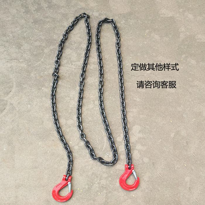 Chain lifting sling iron chain two pairs of heads with claw hook trailer hanging goods buckle force strong ring hoisting car 1 m 3