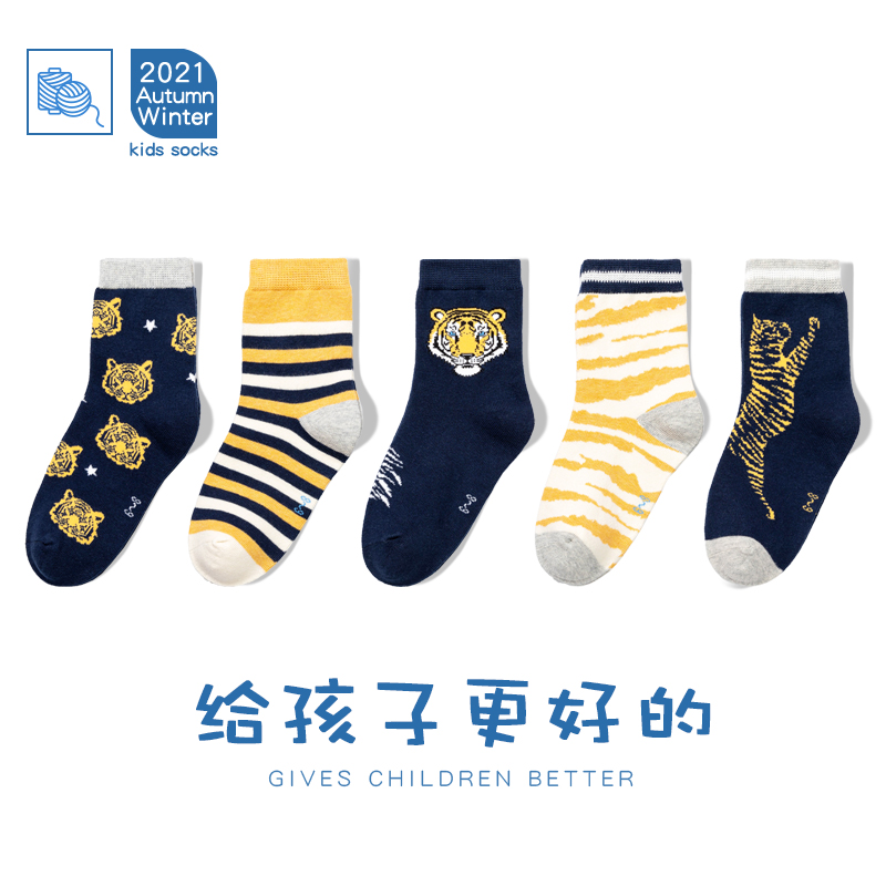 Tiger Theme Socks Spring and Autumn 5 Pairs Pack