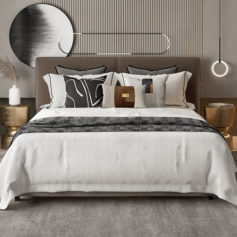 Light luxury model room bed sample House Display Center Villa soft decoration abstract black and white gray modern simple model room bedding