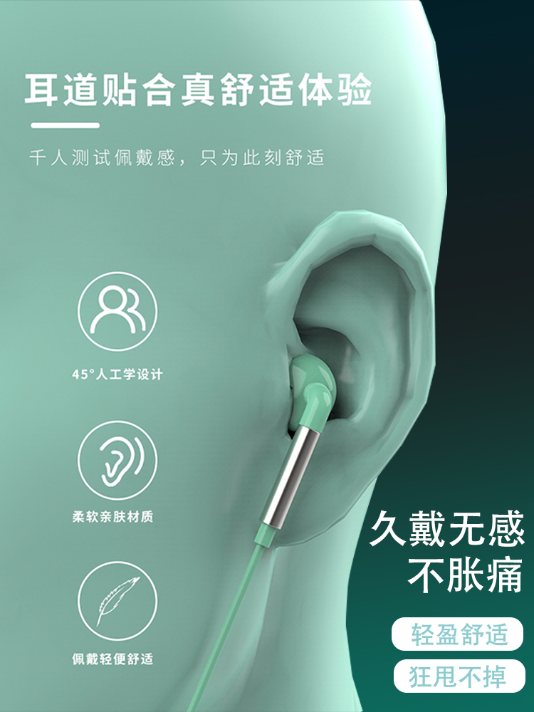 Original set headphones suitable for Huawei oppo Xiaomi vivo Android round hole connector special wired in-ear high sound quality with McNoise girl mobile phone computer k song game universal