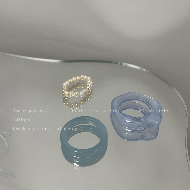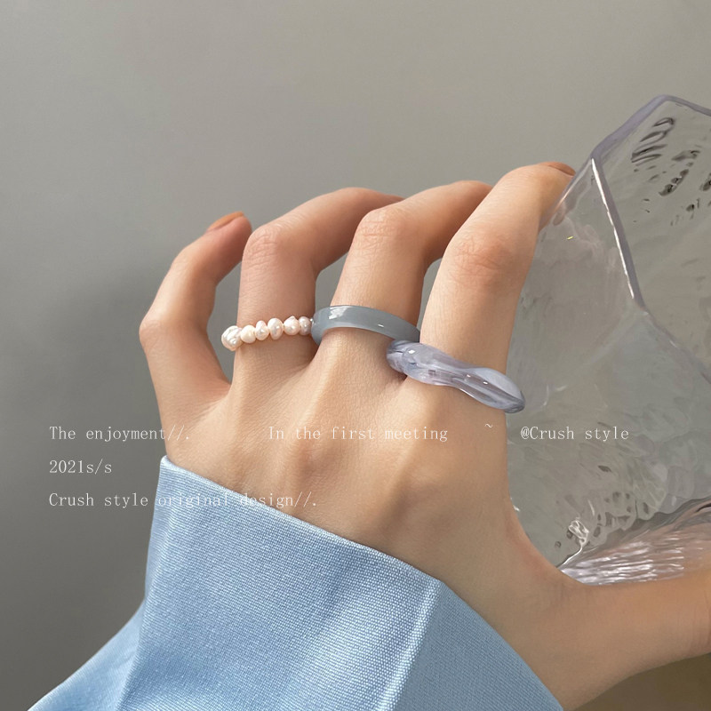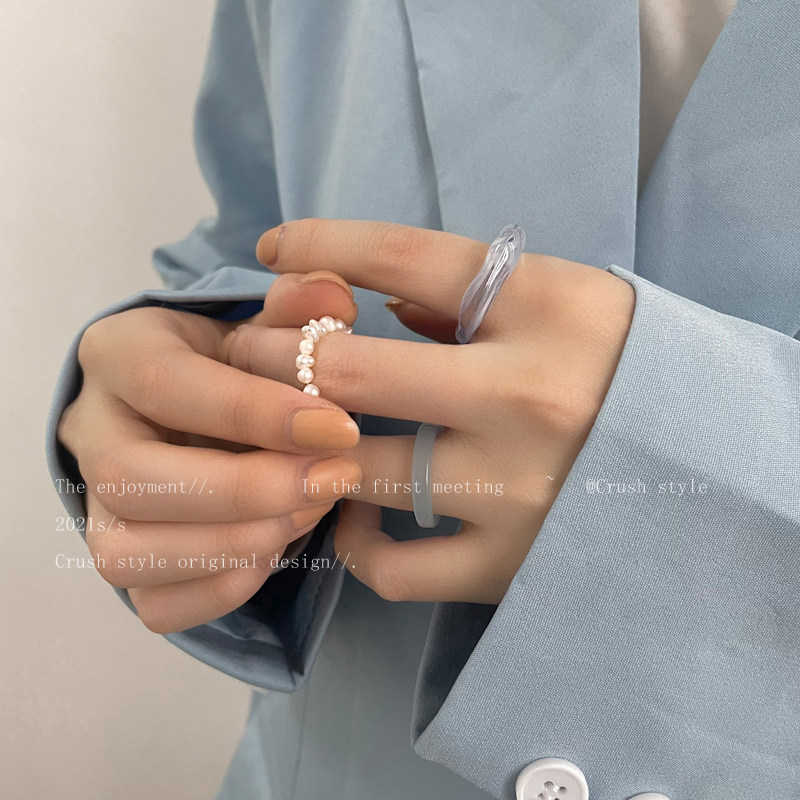 Blue Acetic Pearl Ring Set Woman Korean in Tide Fashion Personality Ring Combined Not With Colored Indy Ring