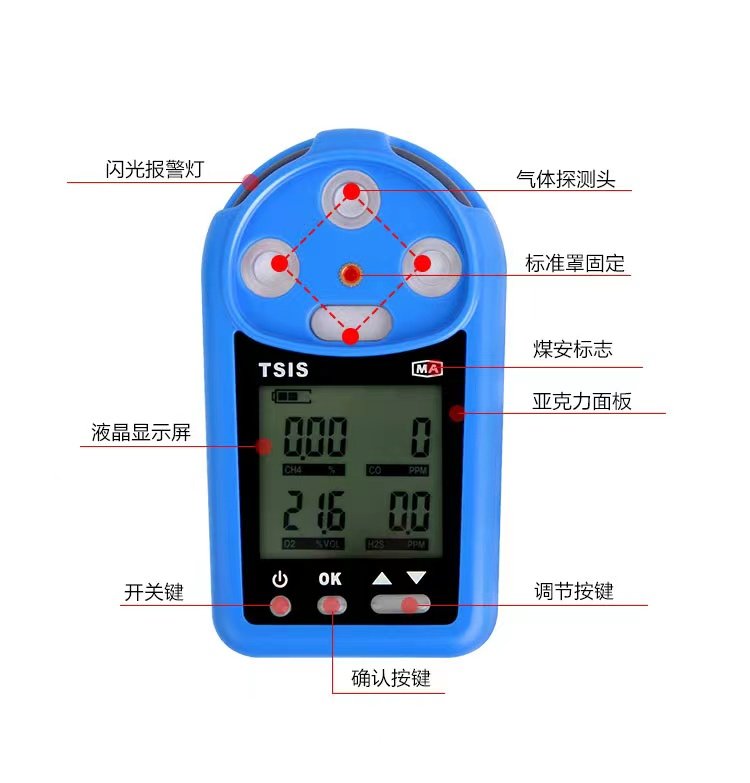 Mining four-in-one gas detector methane carbon monoxide oxygen hydrogen sulfide detector alarm explosion-proof sound and light