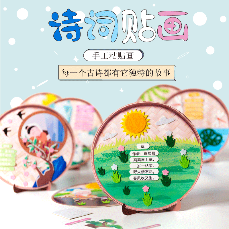 Tang Poetry of children's puzzle toy Poetry Graphic Kindergarten hand - pasted creative paste making materials package gifts