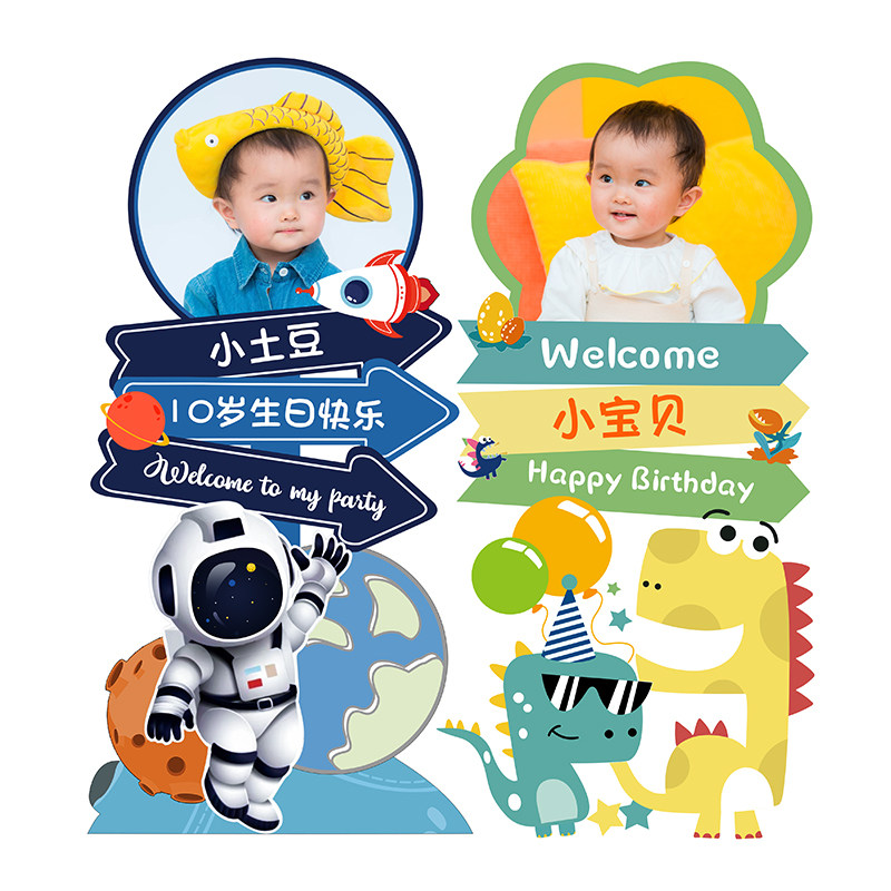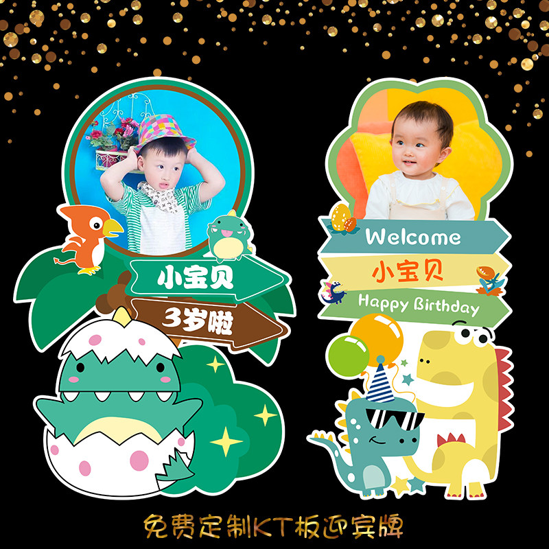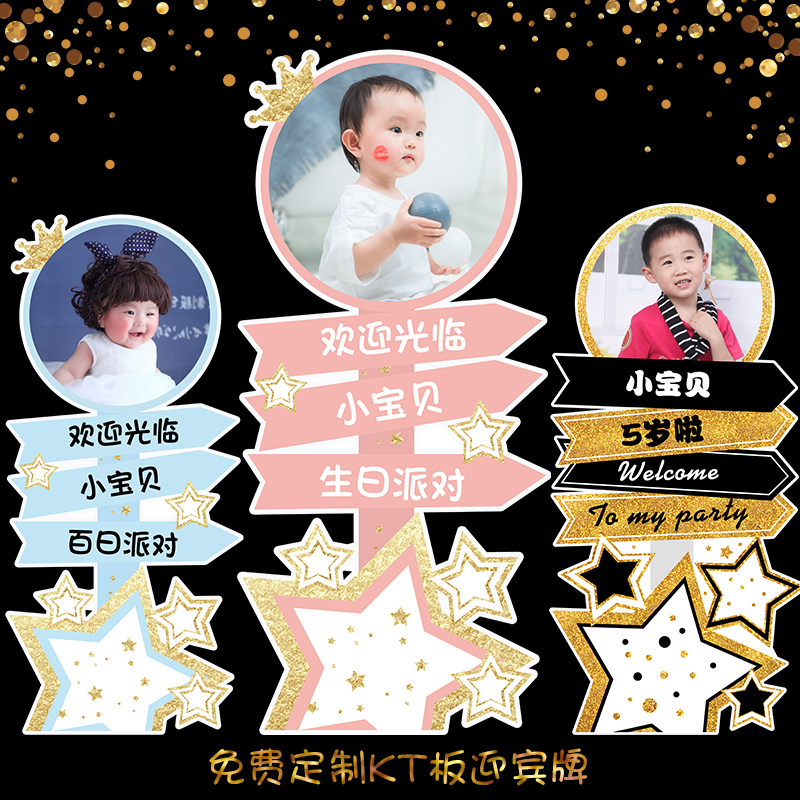 Baby full moon 100-day banquet layout product kt board welcome card children's first birthday cartoon sign custom photo