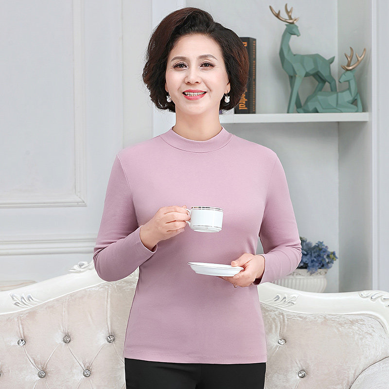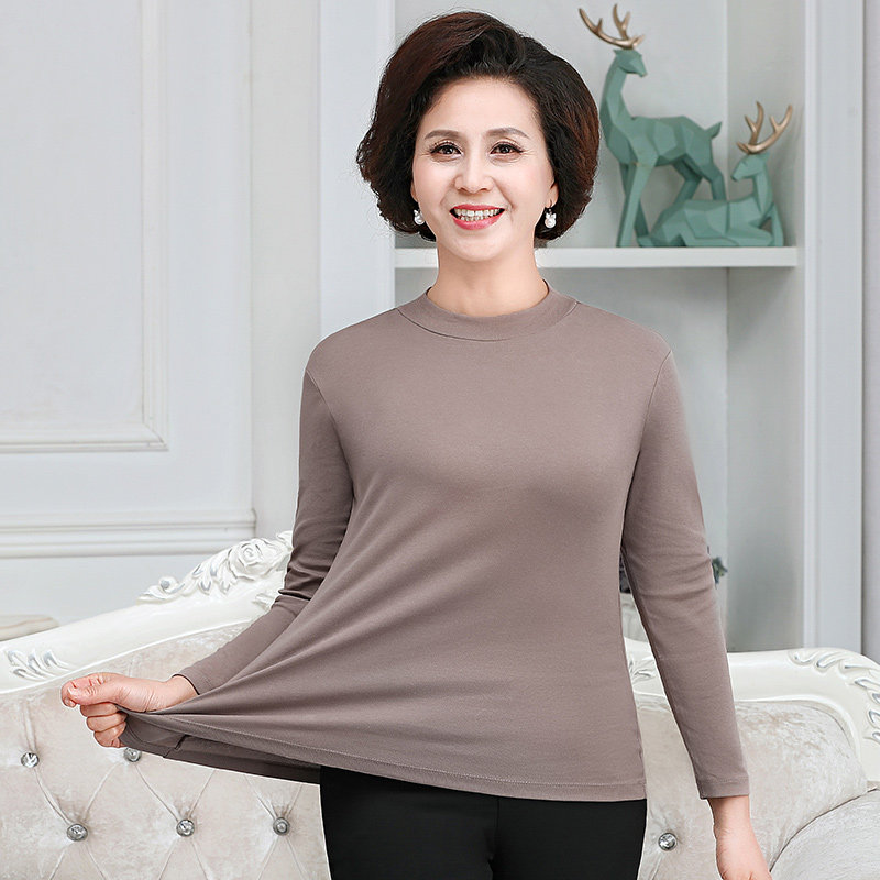 Three Gun Warm Blouse Women Pure Cotton Autumn Winter Half High Collar Middle Aged Underwear Beating Undershirt Thin mom Autumn Clothes