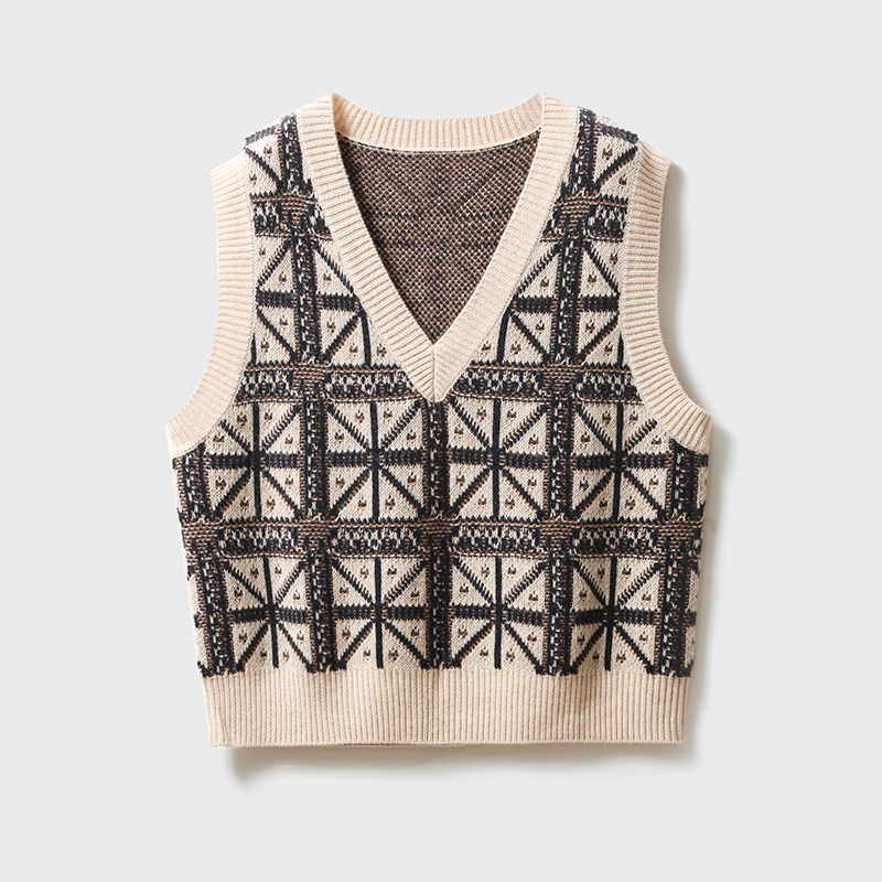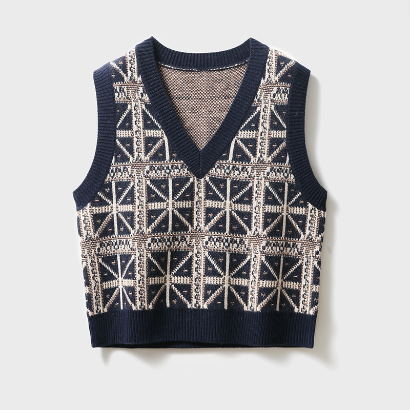Rong Mei (ZZ0731480) accent double-sided geometric jacquard all wool knitted vest pullover