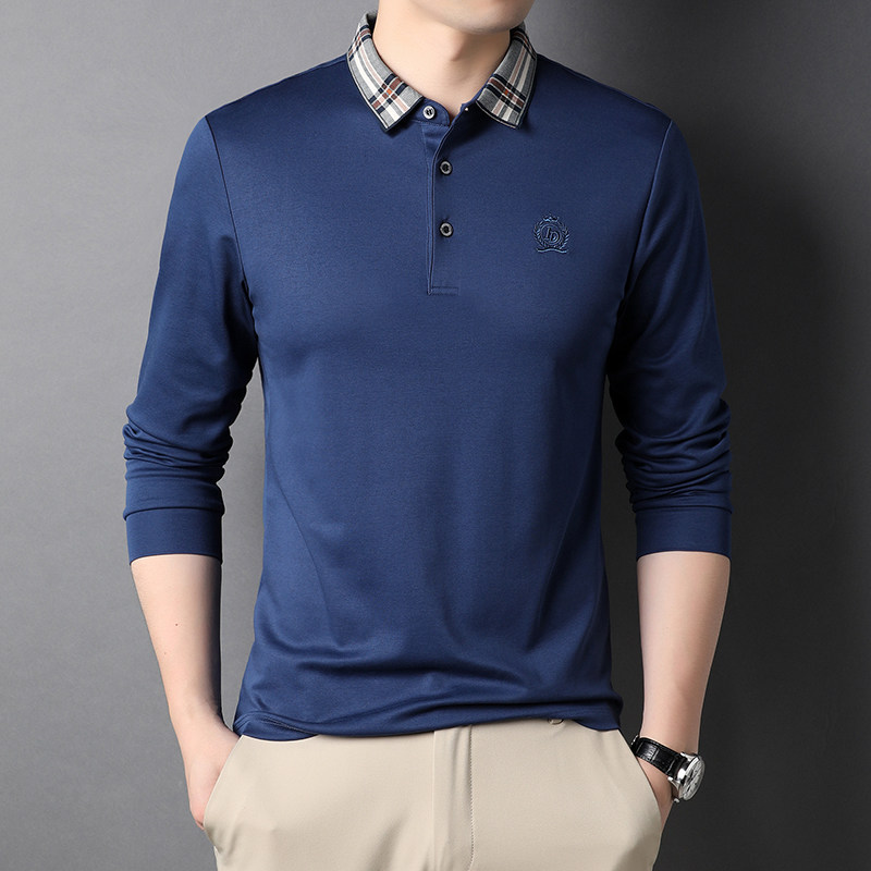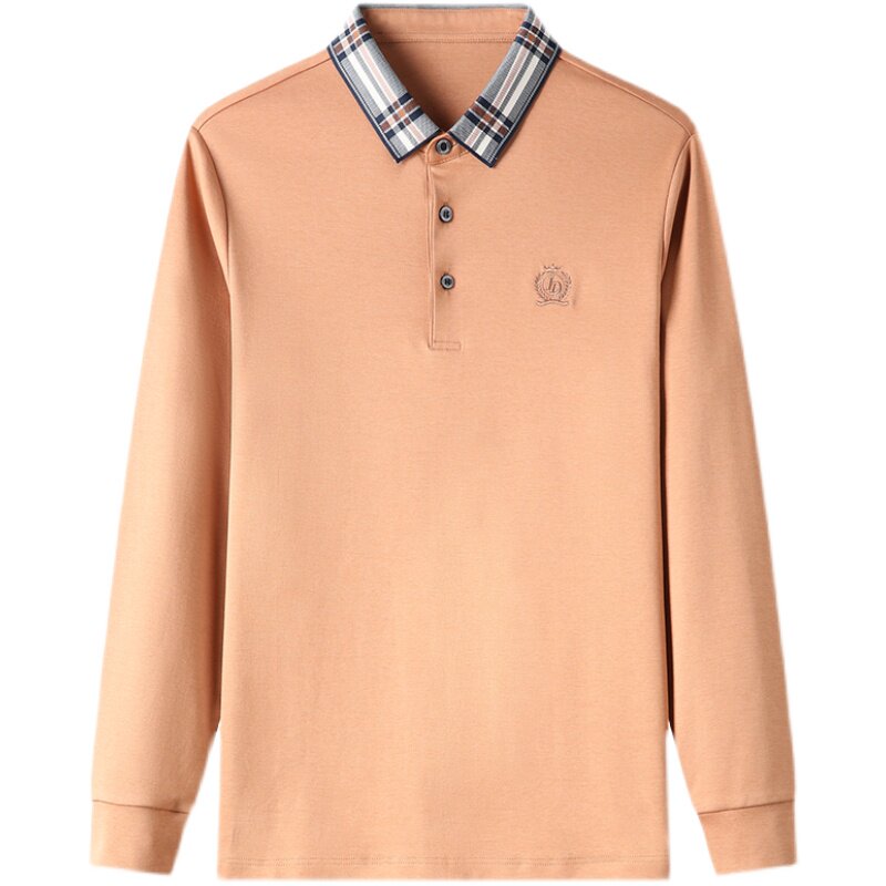 Brand men's clothing new spring and autumn long sleeves cotton T-shirt loose embroidery middle-aged dad equipped with collar bottom POLO shirt