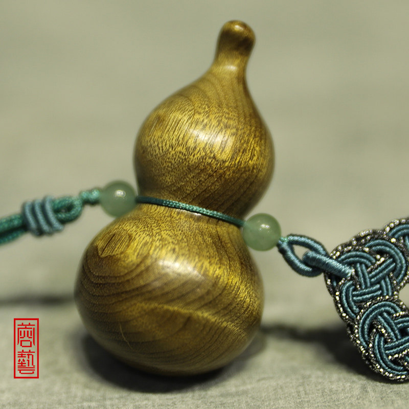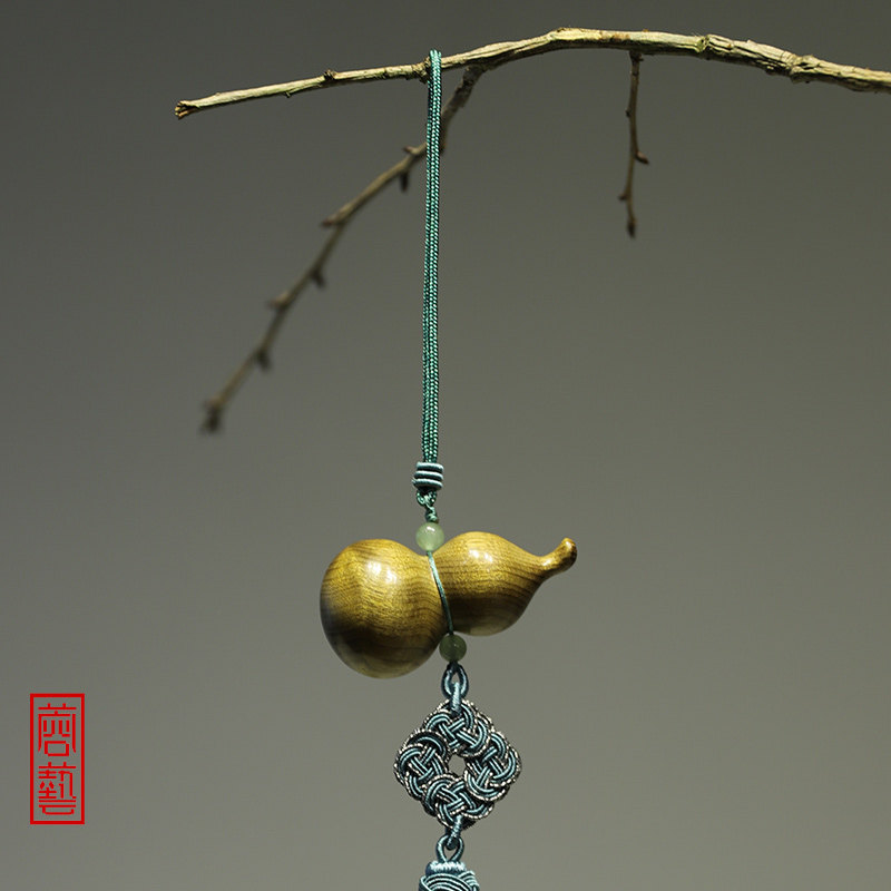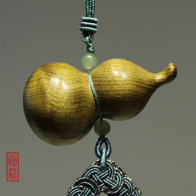 Golden Silk Nanmu Wood Gourd Upscale Handlebar Piece to Play Foru Solid Wood Car Pendant Wood Carved Water Corrugated Craft Gift Hem