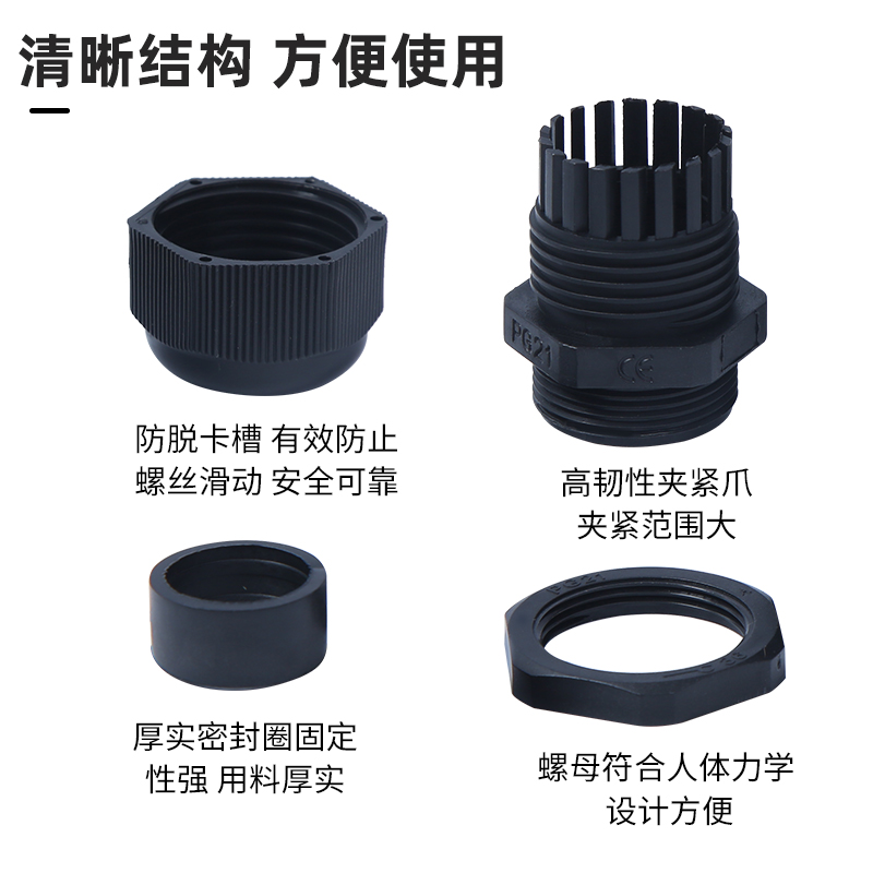 Nylon plastic wire and cable waterproof joint PG Gegeland head fixed sealing metric PG series 11 21 25