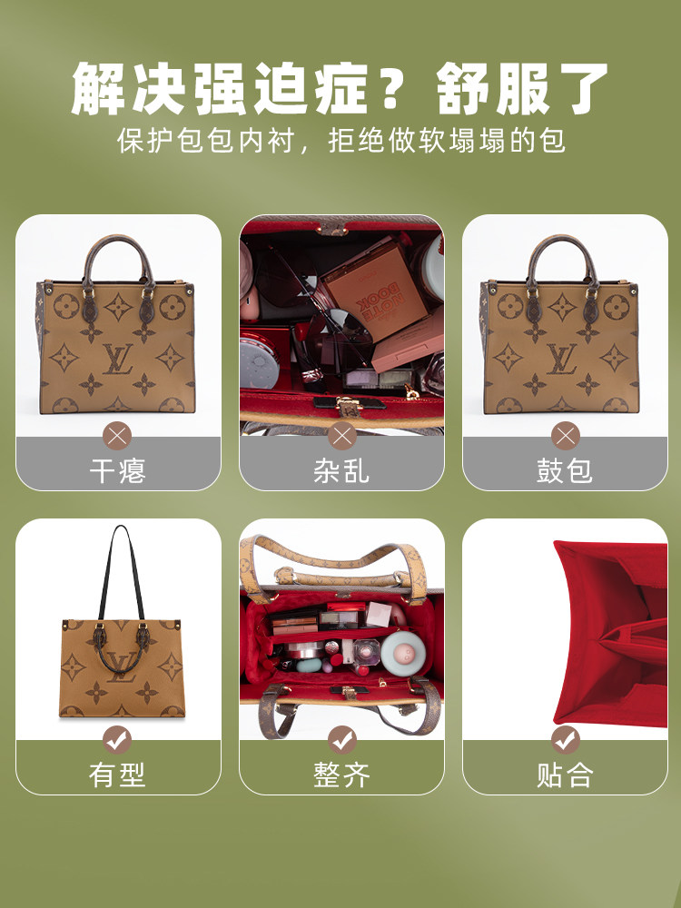 Beige bear suitable for lvonthego liner medium bag storage and finishing separation lining support bag tote bag in the bag