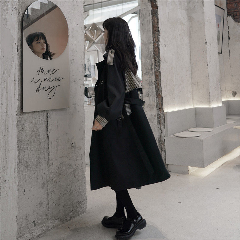 Black windcoat jacket woman 2022 new spring autumn medium long version of small child casual student Grand coat High feeling relaxed