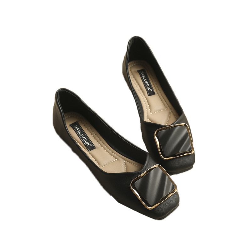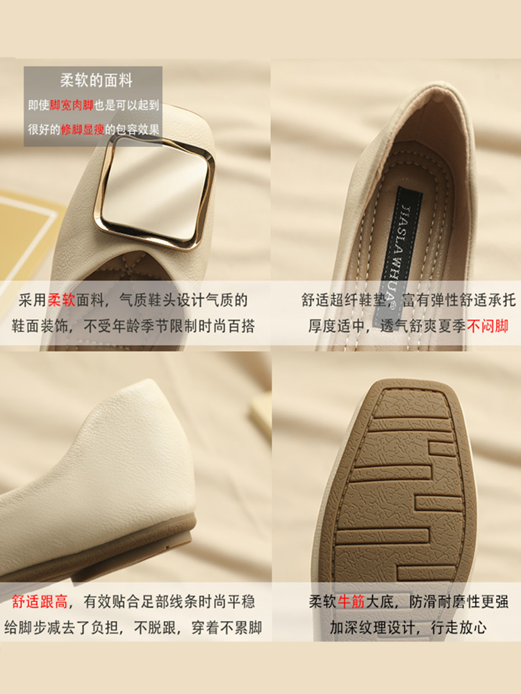 (100% genuine leather) single shoe woman 2022 new summer fairy wind warm and soft bottom flat bottom shoes square-headed bean-bean shoes