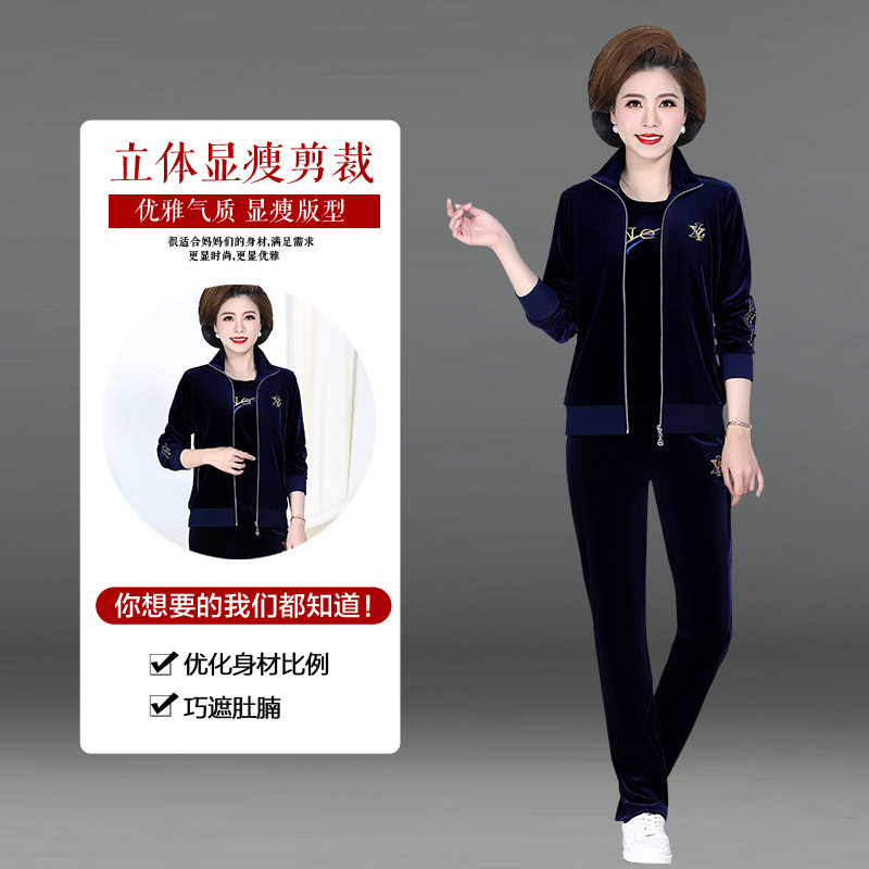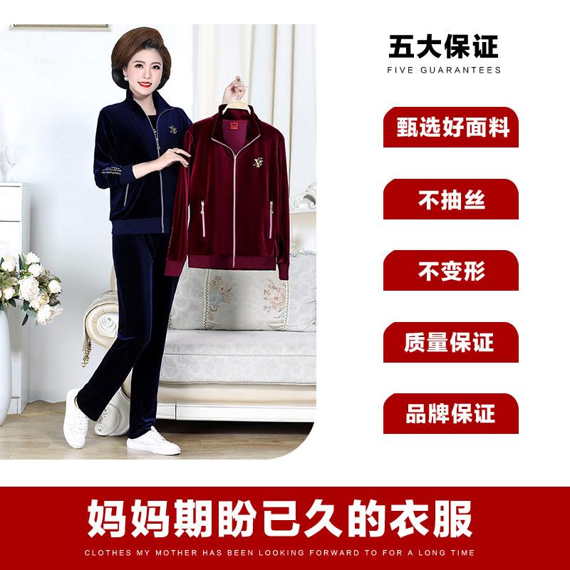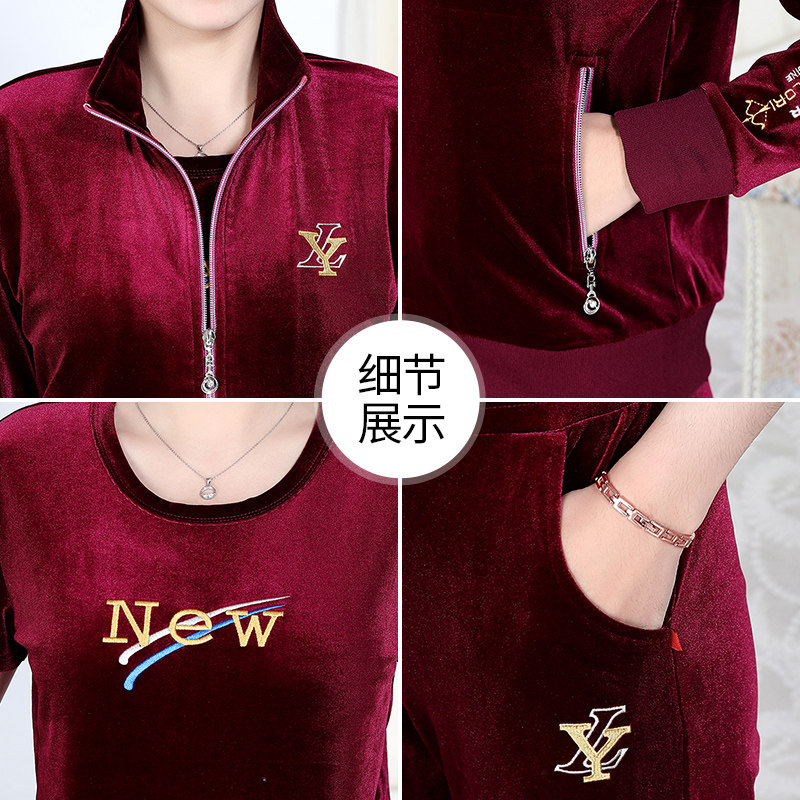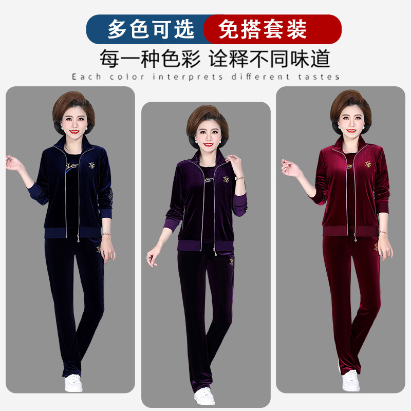 Hengyuan Xiang High-end Mom Spring Clothing Golden Velvet Sports Suit in Old Age Female Dress Jacket Spring Autumn New Three Sets