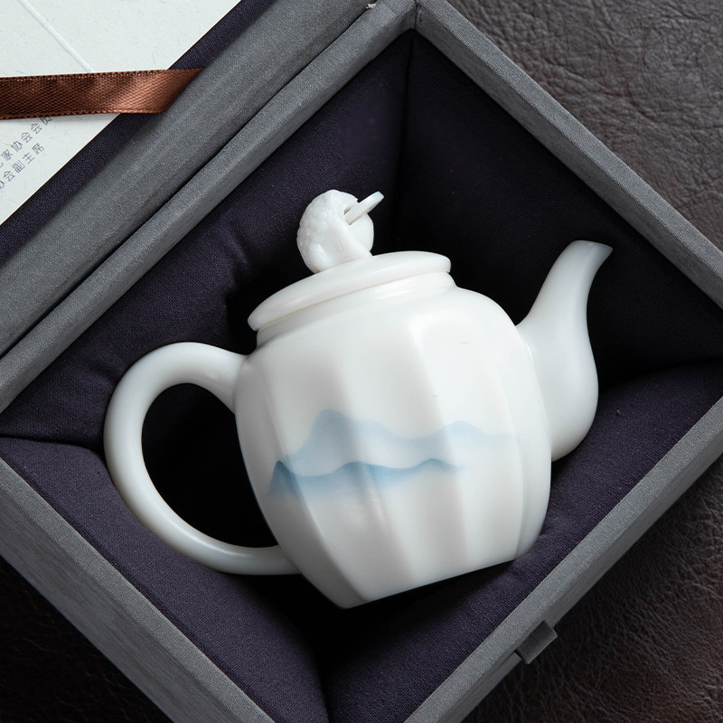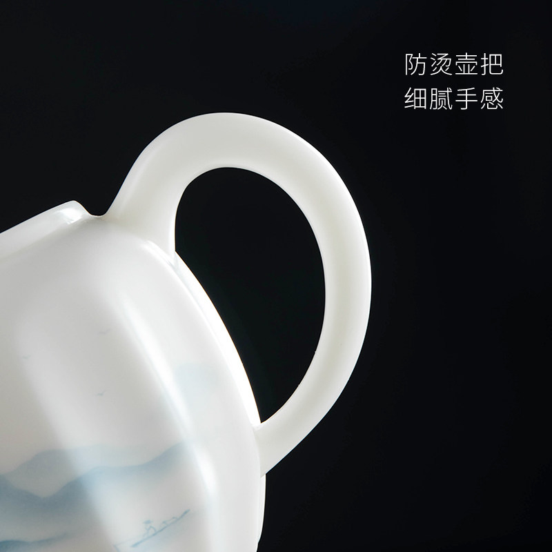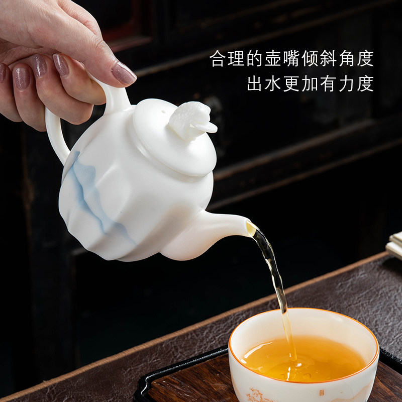 Wonderful lotus-scented hand-painted ceramic Mountain Kettle Defied Goat Grease Jade White Porcelain Handmade Bubble Teapot Single Pot Home Tea Set