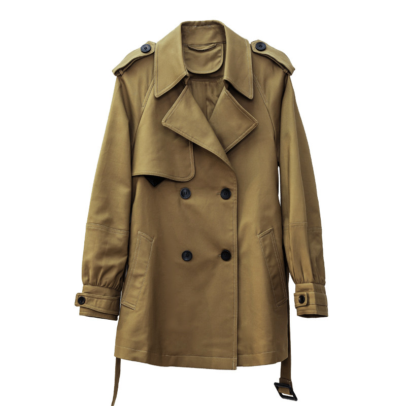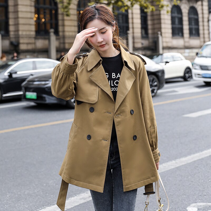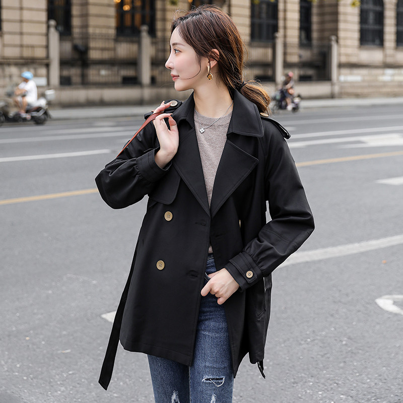 2022 new spring and autumn windbreaker women's short style small man early autumn popular black double-breasted coat this year